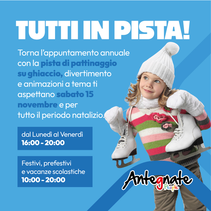 Scalda i pattini, dal 15 Novembre al 25 Gennaio la piazza del Centro si trasforma in una grande PISTA DI PATTINAGGIO per grandi e piccini!